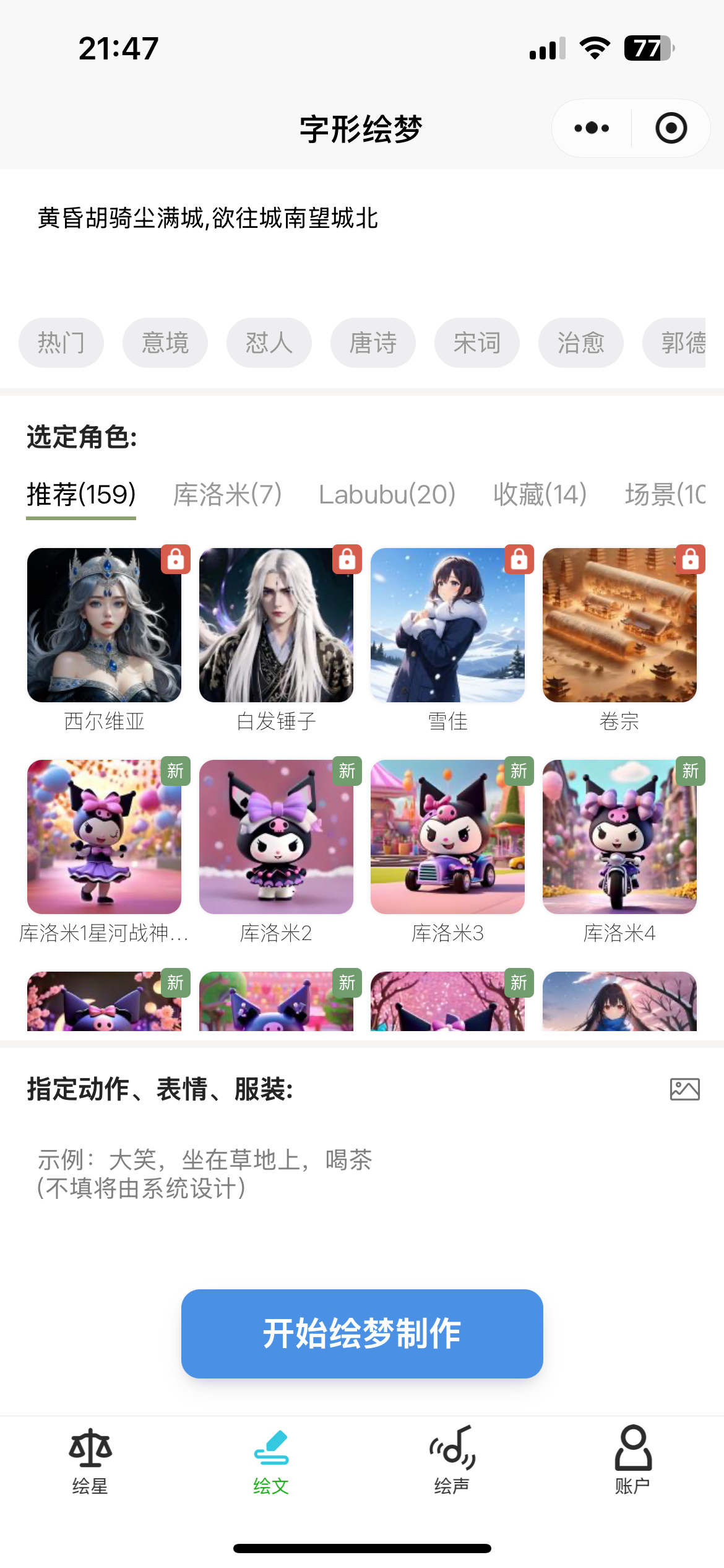 PhotoTalk字形绘梦是一款AIGC的微信小程序。提供一些一些AI能力.打开微信搜索[字形绘梦]即可体验